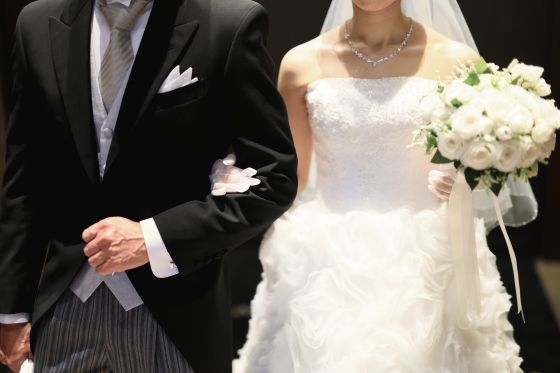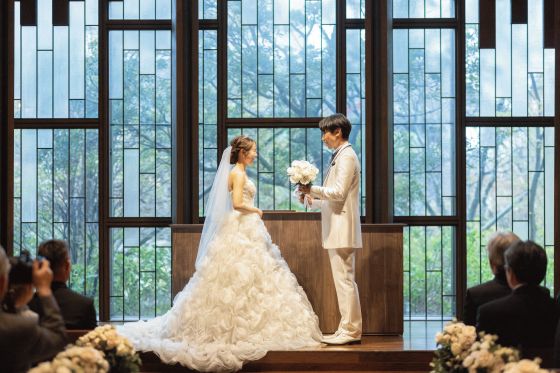 結婚式でスポットライトに照らされたビジューはアクセサリー同様に